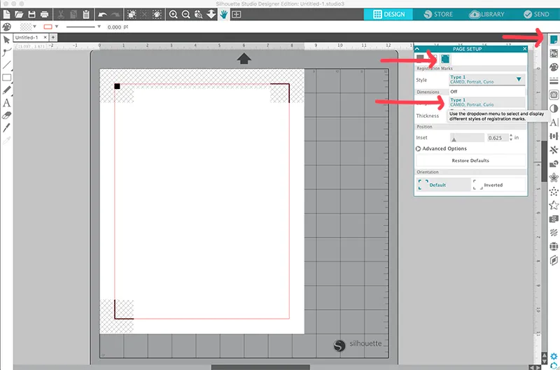 - If you are working with a Silhouette, you need to set up your document in the Studio software before printing. In the page settings tab, start by setting the page size to 8.5 x 11 (or whatever size printable vinyl sheet you are using – just remember you need to use a size your printer can handle). Next, make sure you have the registration marks turned on. You have to have the registration marks turned on for the machine to cut the decals!