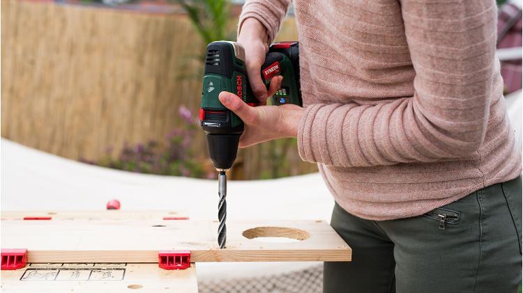 ( You need: Cordless combi drill, Brad point drill bit )