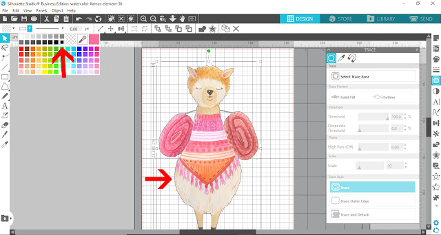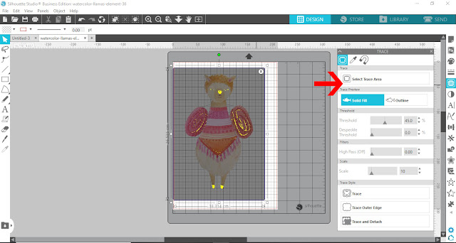5- If the image cannot be separated you will need to manually add the accents to foil. The first way is to use the trace tool. You can trace by color or regular trace. I am using regular trace as my image is a watercolor image.