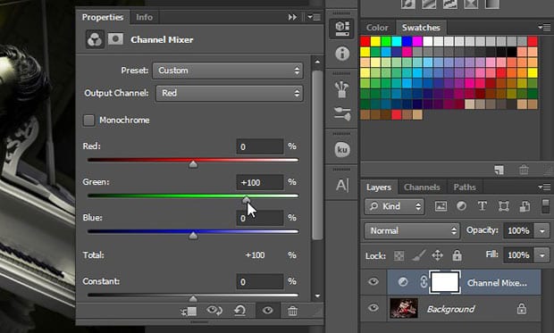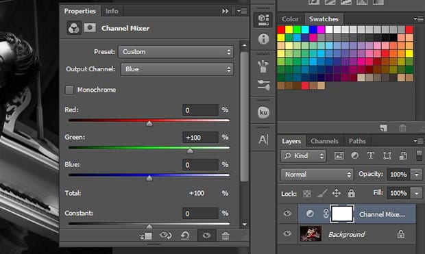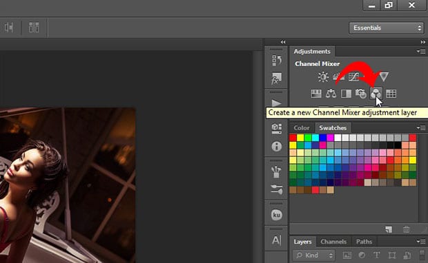 Now select the Channel Mixer from the Adjustments panel at the right-hand side of your Photoshop screen.
