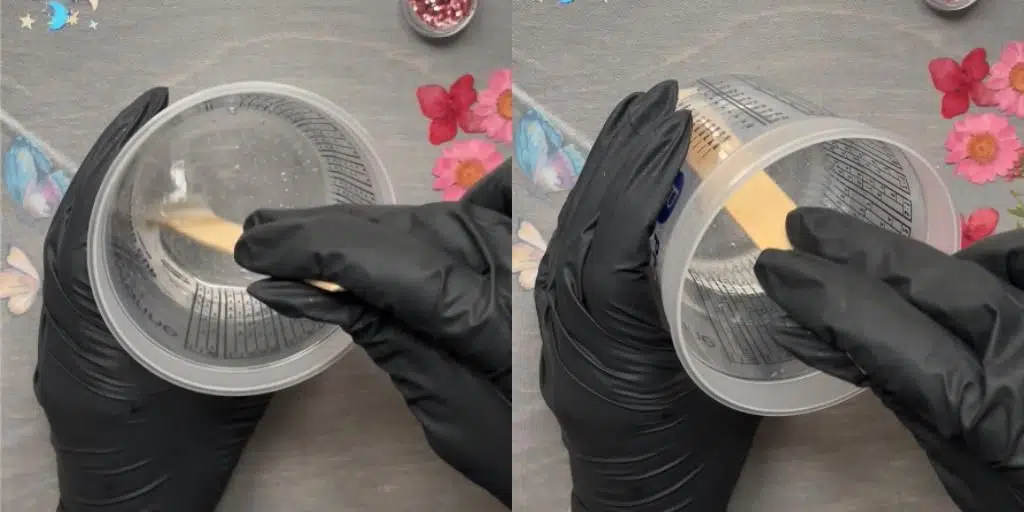 - Slowly and thoroughly combine the two parts of the epoxy resin until there are no swirls and minimal bubbles. Scrape the sides as you go to ensure that all the resin is incorporated. Slowly stir and fold for 3–5 minutes.