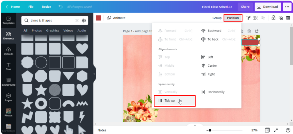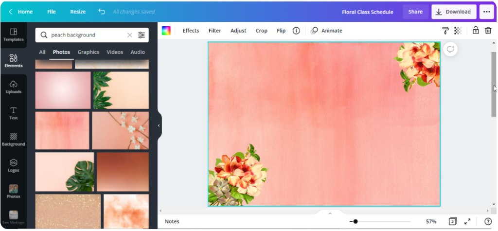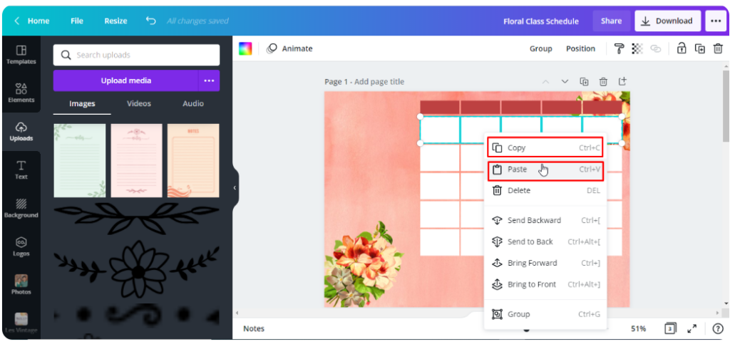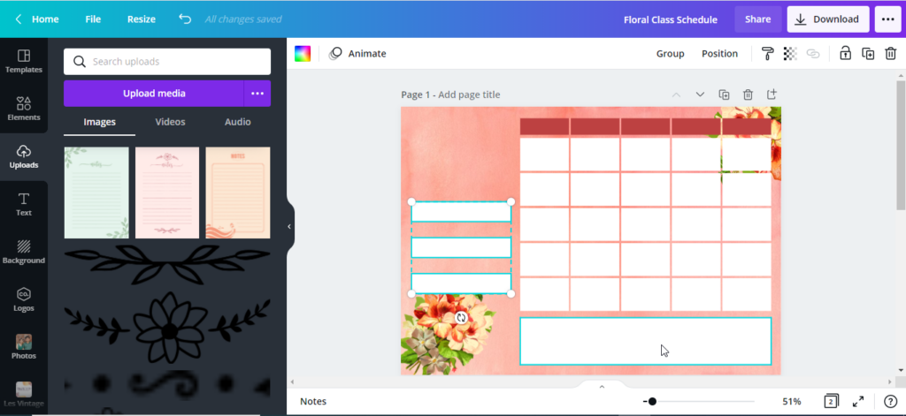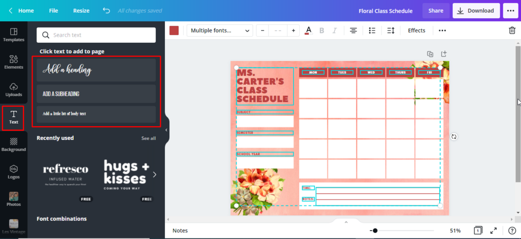 To begin, open your existing design in Canva where you wish to incorporate a table. In this tutorial, we’ll create a daily class schedule as an example.