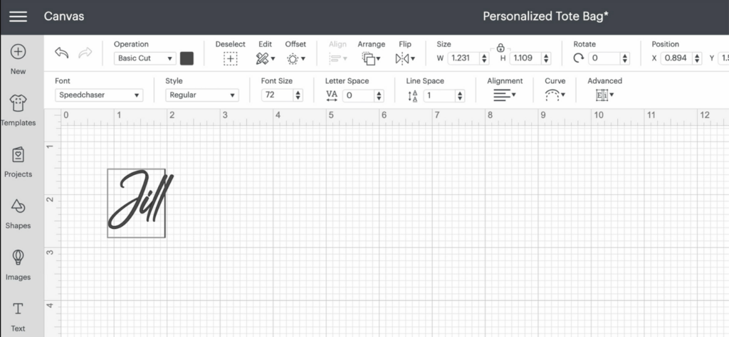 - Open up the personalized tote bag project in Design Space and add text.
