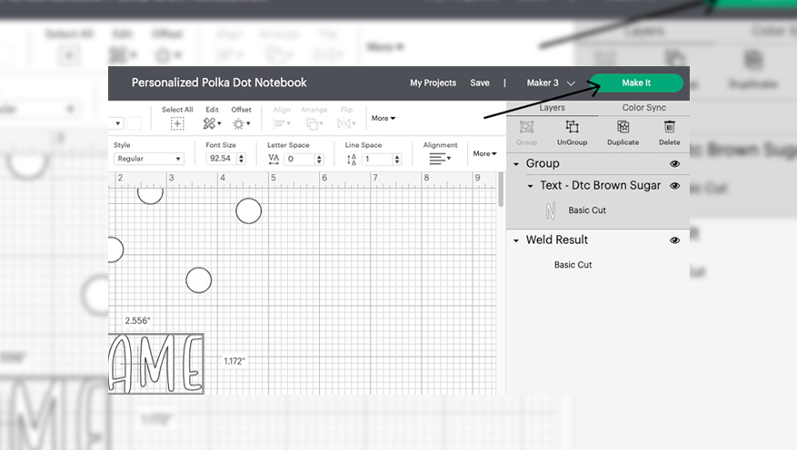 Click “Make it” in the upper right corner and follow the prompts on the software and machine through the cutting process.
