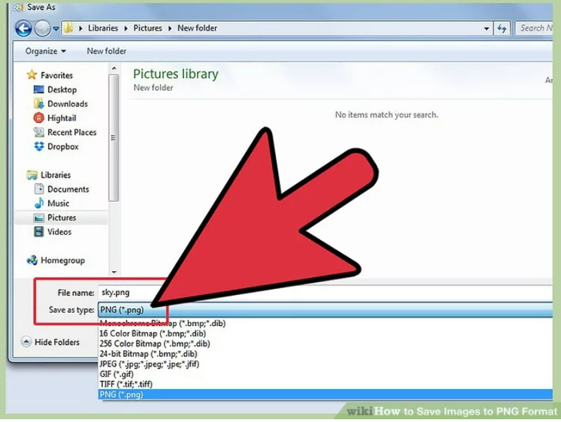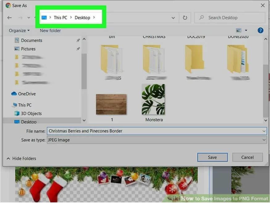 - Select “PNG” then click “Save.” The file will be saved in the same directory as the original one but as a PNG file.