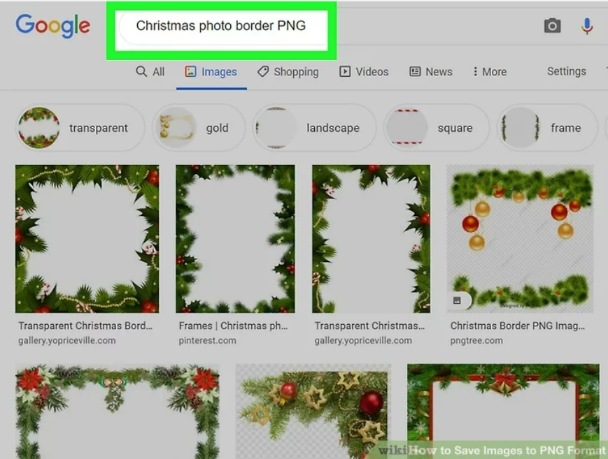 - Be sure to add “PNG” at the end of your search, so only PNG files will show.
