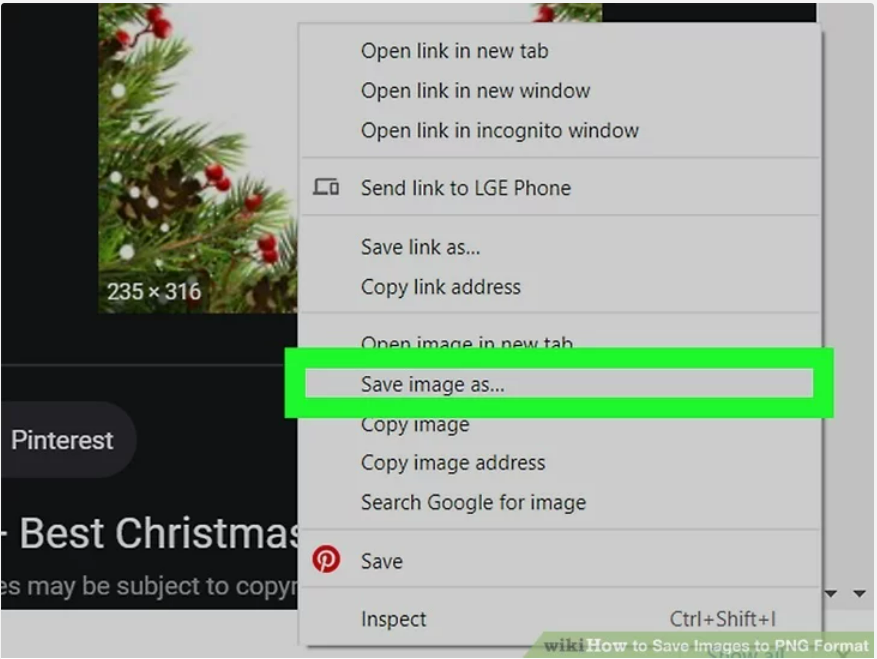 5. Right-click the PNG and select “Save Image As”. The “Save Image As…” button will turn blue when you click it.