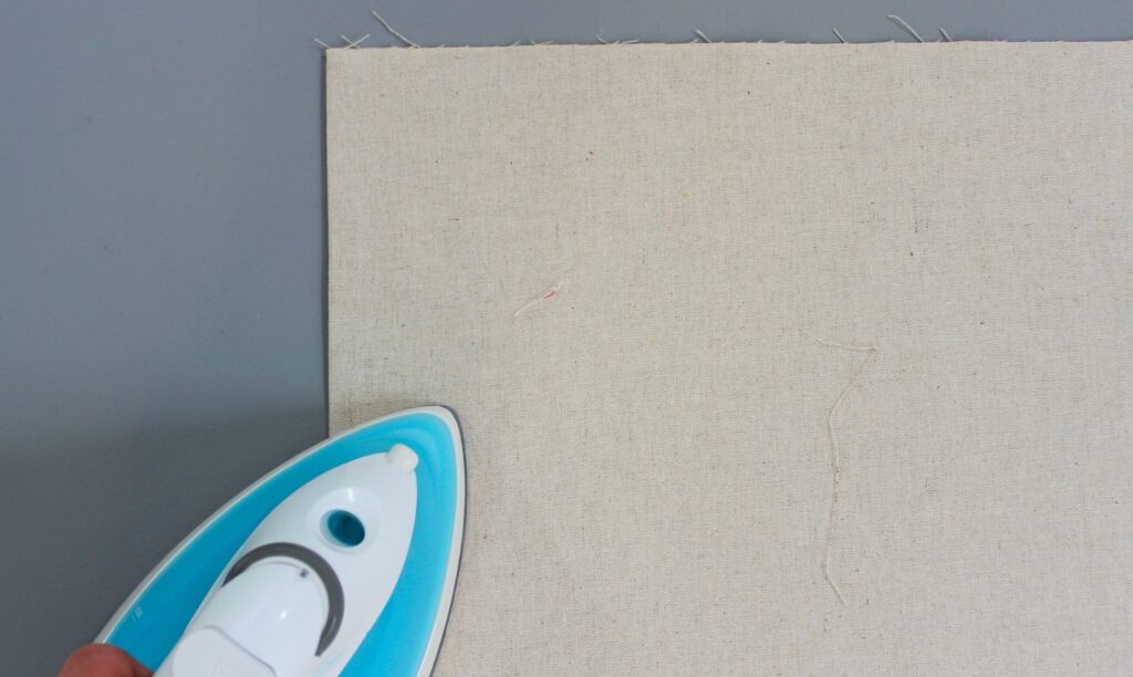 - For the back side of the pillow, cut two 13″ x 22″ pieces of the light fabric. Fold each piece in half and press along the fold with an iron. This fabric should now measure 13″ x 11″.