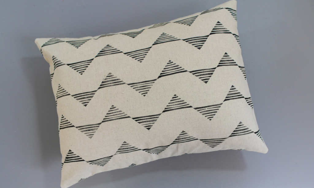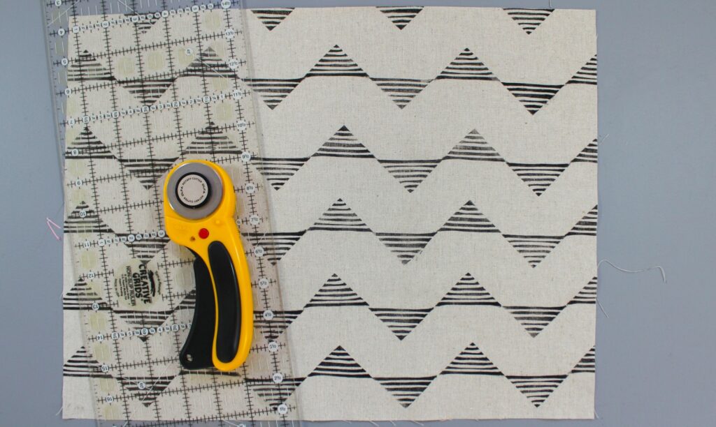 - Grab your printed fabric and press out any wrinkles so it lies smoothly on your work surface. Using your rotary cutter or scissors, cut a rectangle that is one inch longer and one inch wider than your pillow form. Our pillow is 12″16″, so we cut a 13″ x 17″ piece of fabric.