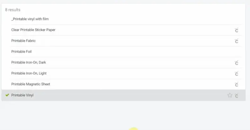 - Back at the Cricut Design Space screen, choose ‘Browse all Material’, type in printable vinyl and select it. Some machines might have a manual dial on the Cricut machine where you can select the material.
